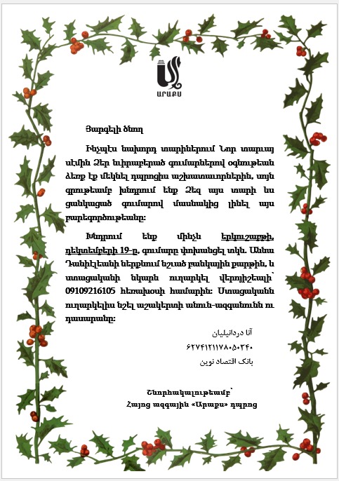 Աշխատաւորների Նոր տարւայ նւէր از آنی مانوکیان در شنبه، 19 آذر 1401، 11:11 صبح Number of replies: 0 پیوند مستقیم