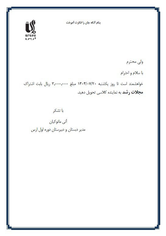 اشتراک مجلات رشد از آنی مانوکیان در چهارشنبه، 16 مهر 1404، 6:17 عصر Number of replies: 0 پیوند مستقیم