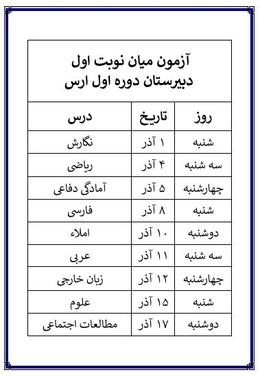 آزمون میان نوبت اول (دبیرستان) از آنی مانوکیان در پنجشنبه، 29 آبان 1404، 1:04 عصر Number of replies: 0 پیوند مستقیم