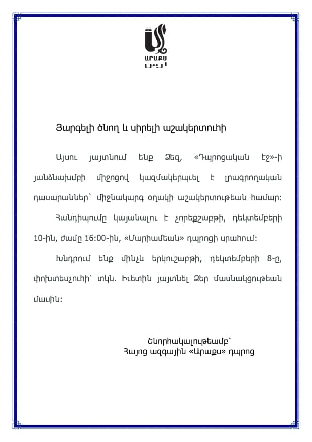 Լրագրողական դասարան از آنی مانوکیان در یکشنبه، 16 آذر 1404، 7:00 عصر Number of replies: 0 پیوند مستقیم