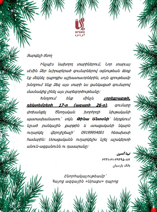 Աշխատաւորների Նոր տարւայ նւէր از آنی مانوکیان در چهارشنبه، 19 آذر 1404، 5:11 عصر Number of replies: 0 پیوند مستقیم